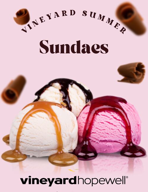Invite two or more of your Vineyard Church friends to your home this summer and the Sundaes are on us! Quantities are limited- we will take the first 15 groups to register.